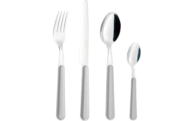 Beautifully shaped, high-quality stainless steel cutlery with coloured plastic handles for 4 people. Pleasant to the touch, dishwasher safe and robust. Supplied in a practical cutlery box.