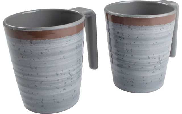 A lightweight and sturdy mug with handle. It is also virtually unbreakable, shatterproof and scratch resistant. The set consists of 4 cups. They are made of melamine, dishwasher safe and food safe.