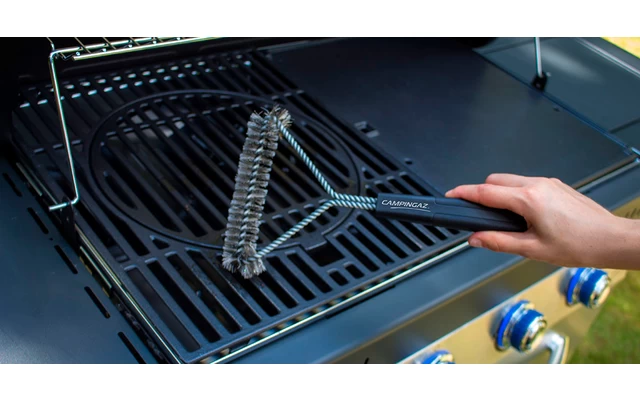 The brush features an ergonomic handle for comfortable use. Thanks to the durable stainless steel bristles, grease and burnt-on food residues (or just grill residues) can be effectively removed.