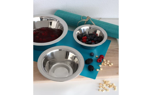 The individual bowls can be perfectly stacked and stored due to the different diameters. These robust and indestructible kitchen helpers are easy to clean, hygienic and long-lasting.