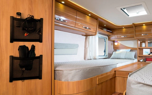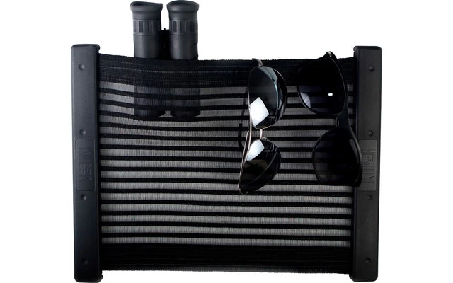 The separately available end strip (can be retrofitted) prevents thin or flat contents from slipping through. Normally the KÖPER Storage Net holds almost everything. In caravans or motorhomes, we generally recommend the installation of an end strip if the net is not fixed close to the ground.