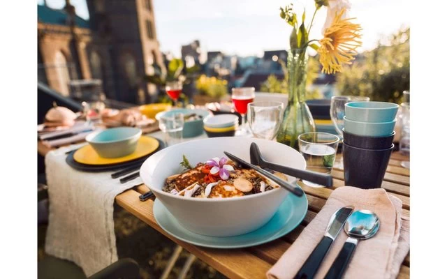The surface of the sturdy material was inspired by the natural structure of pebbles, which gives the cup a unique speckled and matte finish. Of course, the mug is 100% BPA-free, light in weight and perfectly stackable. So ideal for a cozy summer dinner on the roof terrace, camping or a picnic in the countryside