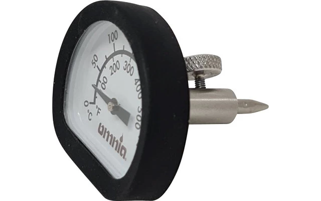 Attached to the lid, in one of the ventilation holes. Can also be used as a meat thermometer by measuring the core temperature directly in the cooked food.