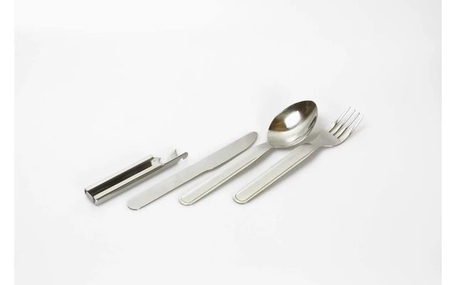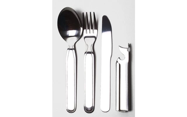Simple stainless steel cutlery of good quality. In function modeled on the Bundeswehr cutlery. Sturdy, stainless, equipped with can and bottle opener.