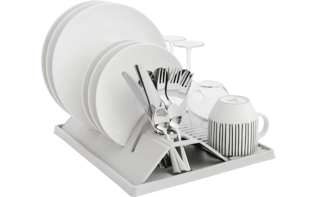 This draining rack can be folded flat and is an excellent design for dish-washing when travelling.
