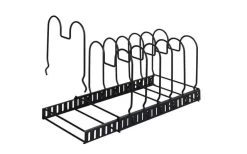 Order makes mood! The modern dish rack allows space-saving and neat storage of pans, lids, baking dishes, dishes, casseroles, cutting boards, etc. in different sizes. Especially practical: the seven wire hangers are individually adjustable and offer six compartments in the desired width. So you can easily store all kitchen utensils either vertically or horizontally in the clever shelf neatly – whether in the kitchen drawer or on the countertop.