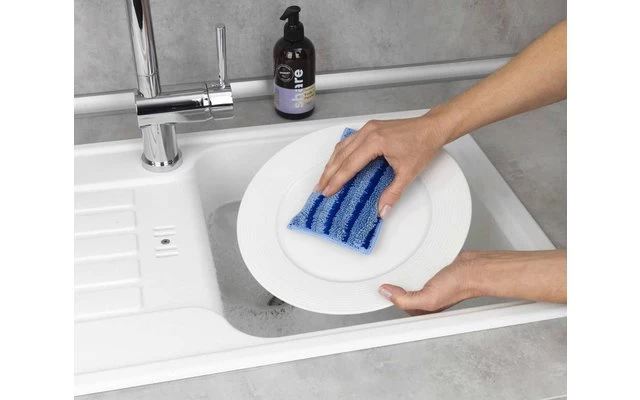 This is good for the environment and your wallet. Held in trendy gray and blue, these attractive dishwashing sponges make the kitchen a true place of well-being.