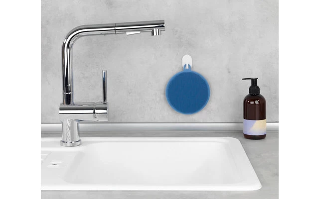 When not in use, the sponges in the trendy colors of blue and gray can be hung within reach in a space-saving manner and within easy reach using the suction cup or the hanging eyelet.